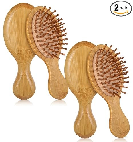 2 Stück Haarbürste Holz, Kleine Haarbürste aus natürlichem Bambus mit kompaktem Design, leichtes Material für sanfte Kopfhautmassage, Reisen, Frauen Männer Kinder und alle Haartypen